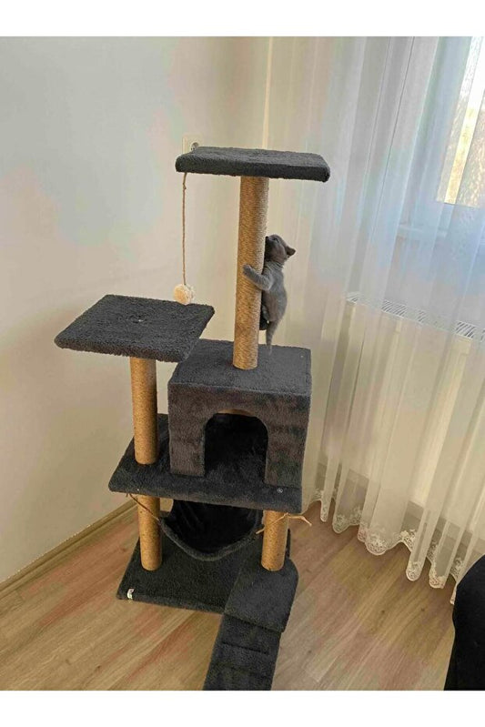 Antrasit B-07 Hamaklı Yuvalı Lüx Kedi Evi - Kedi Tırmalama Evi